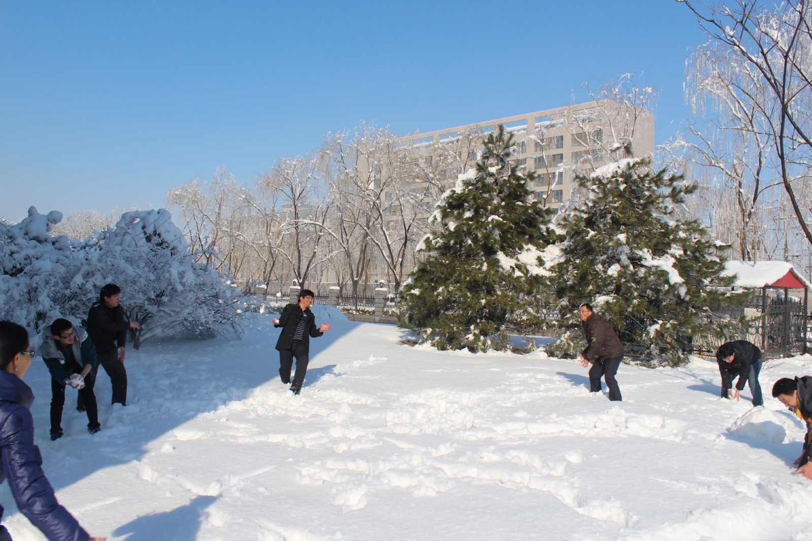 2013年3月20日北京下了一场大雪,据说是北京40年来下的最大的一场雪了,我们在办公室后头拍了一张合影,好像人少了,看看少了谁?